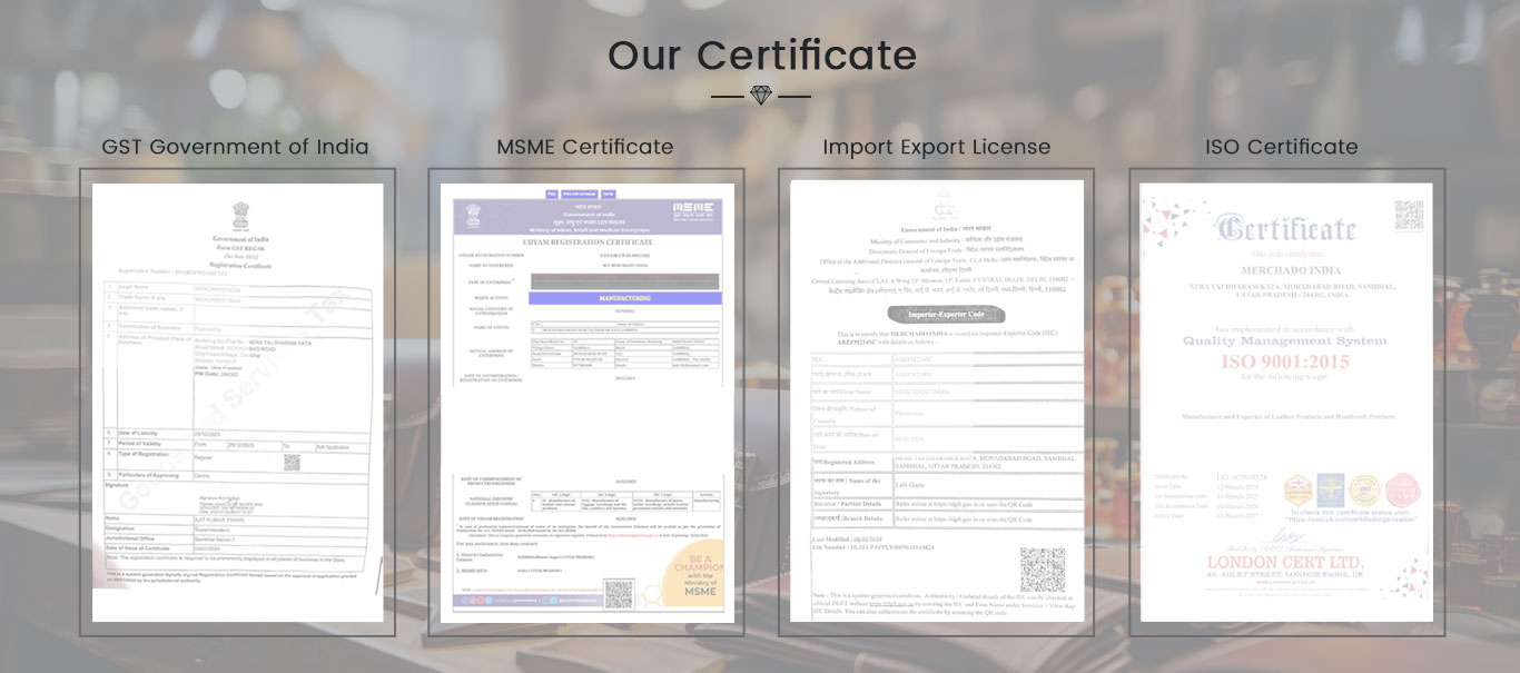 Where quality meets tradition in the world of Indian leather craftsmanship. Established with a passion for excellence, we specialize in manufacturing and trading high-quality, pure leather products that epitomize luxury and durability.